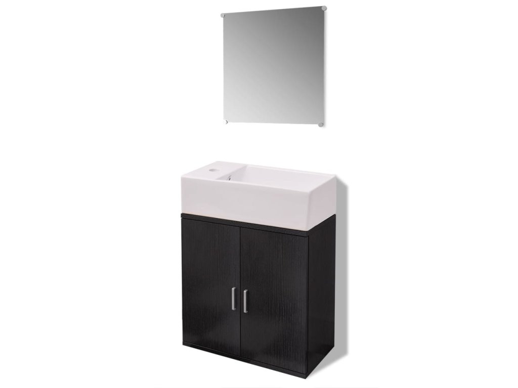 Sada nábytku sestává ze zrcadla a skříňky pod umyvadlo. Skříňka pod umyvadlo poskytuje dostatečný prostor pro ukládání vašich toaletních potřeb, zkrášlovacích přípravků a různých druhů drobných předmětů. Tato koupelnová skříňka, vyrobená z vysoce kvalitní dřevotřísky, je velmi robustní a odolná.