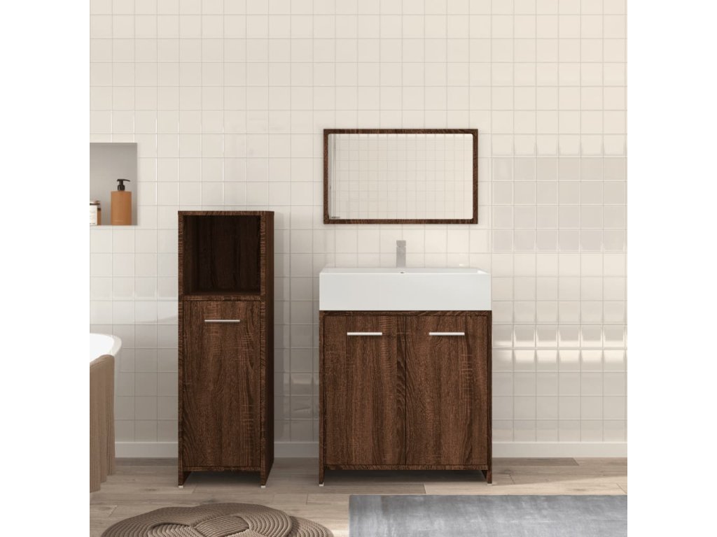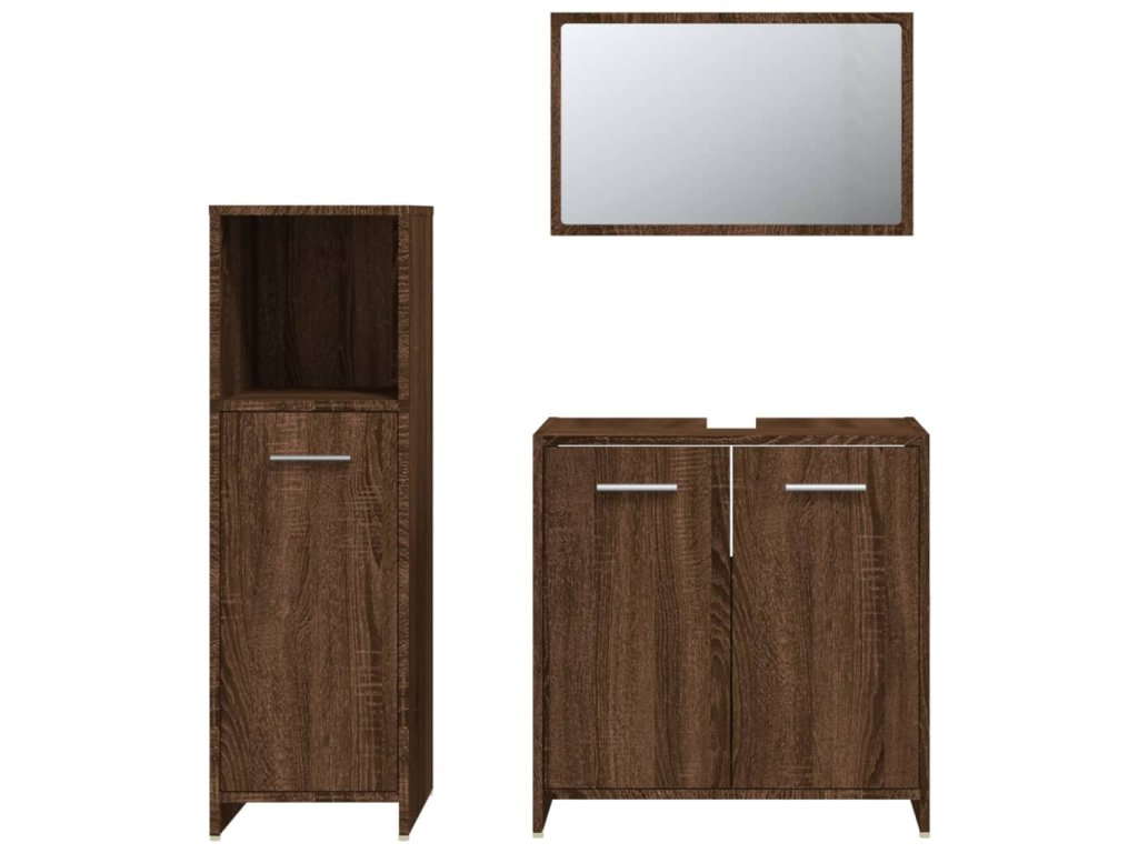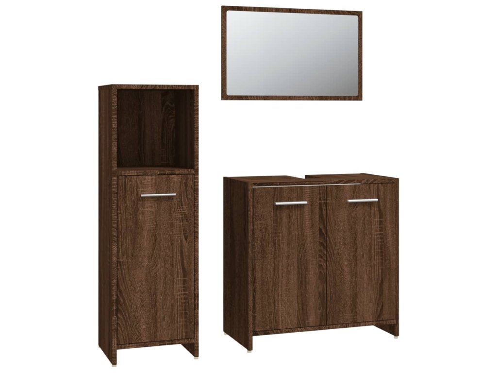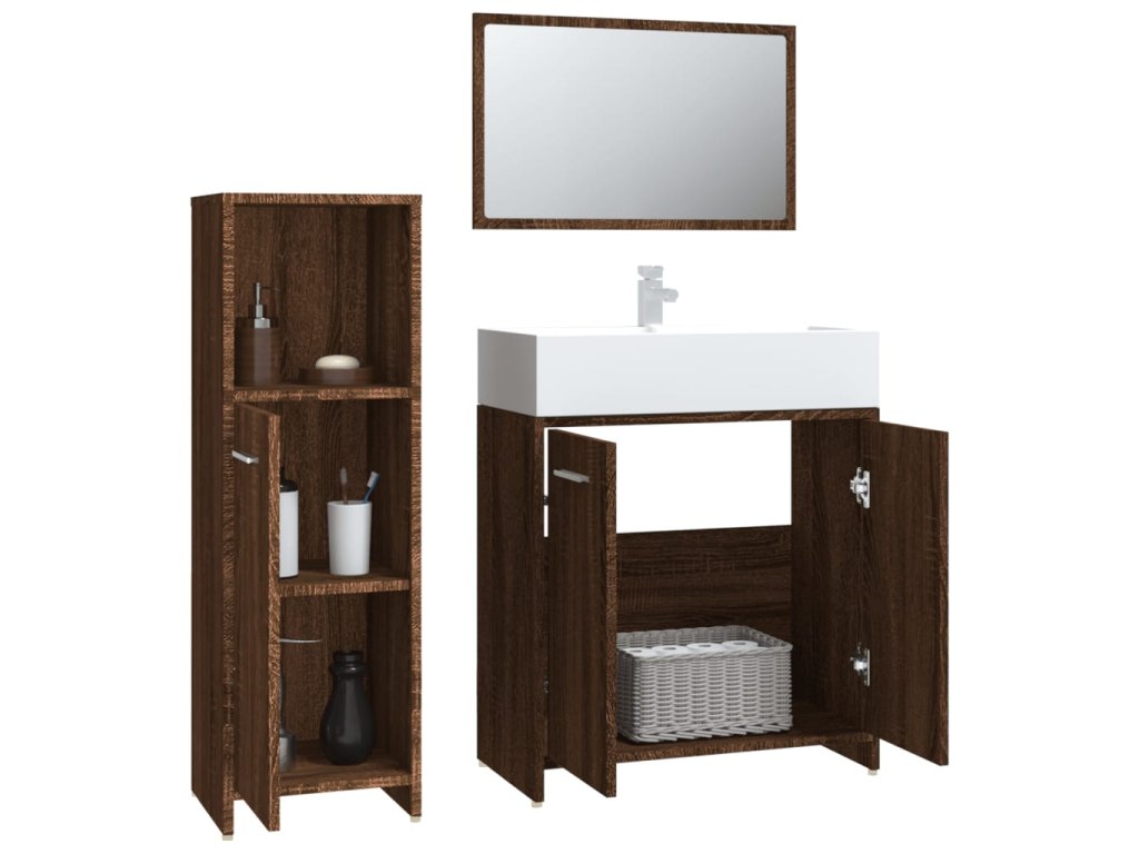 3dílný set koupelnového nábytku hnědý dub kompozitní dřevo 3154408