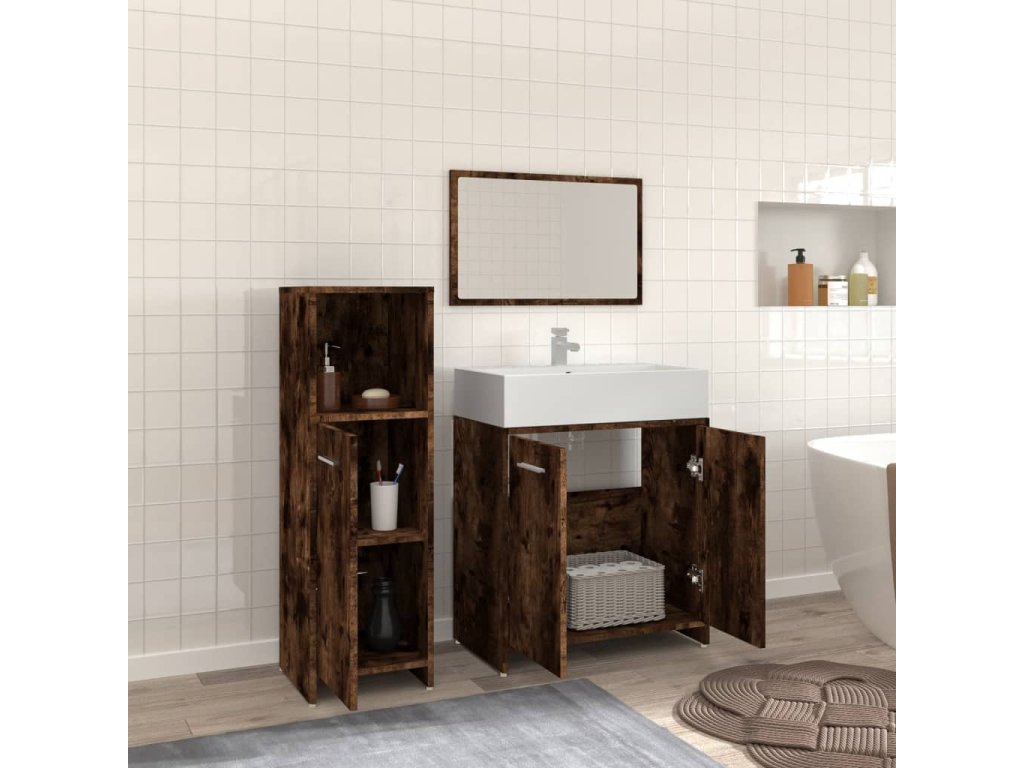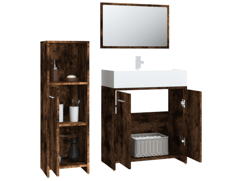 3dílný set koupelnového nábytku kouřový dub kompozitní dřevo 3154406
