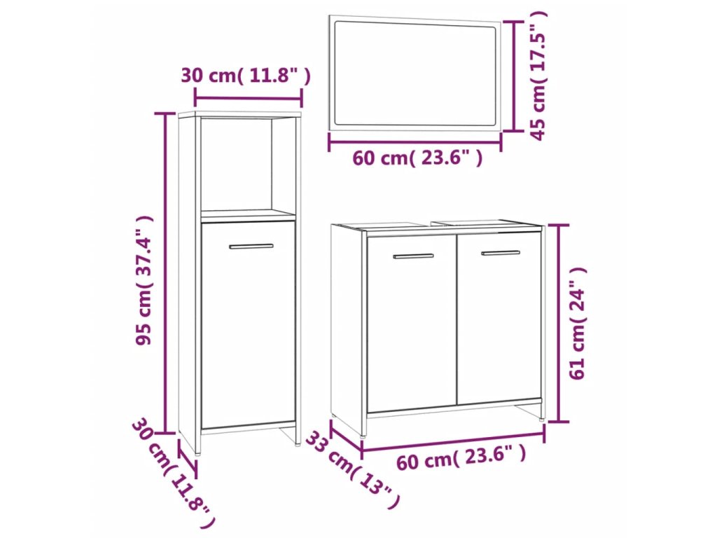 Tato 3dílná sada koupelnového nábytku s velkým úložným prostorem je elegantním a nadčasovým doplňkem každé koupelny nebo toalety.