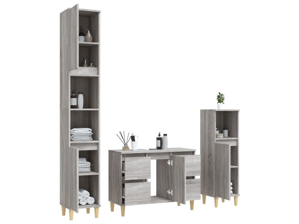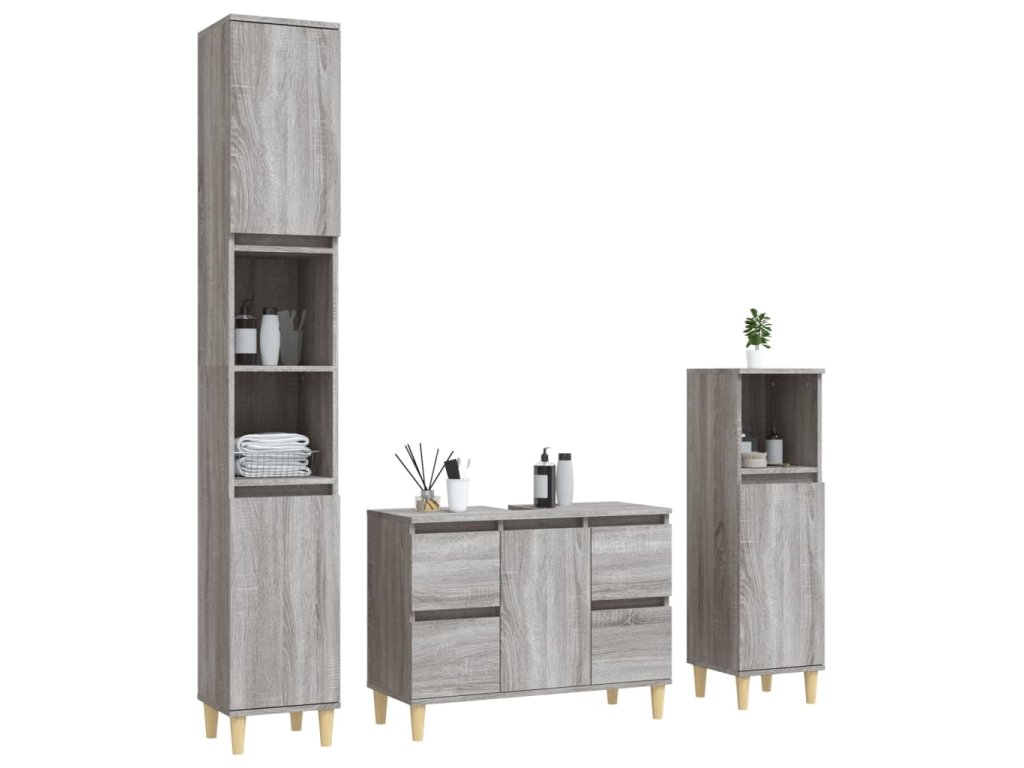 3dílný set koupelnového nábytku šedý sonoma kompozitní dřevo 3185603