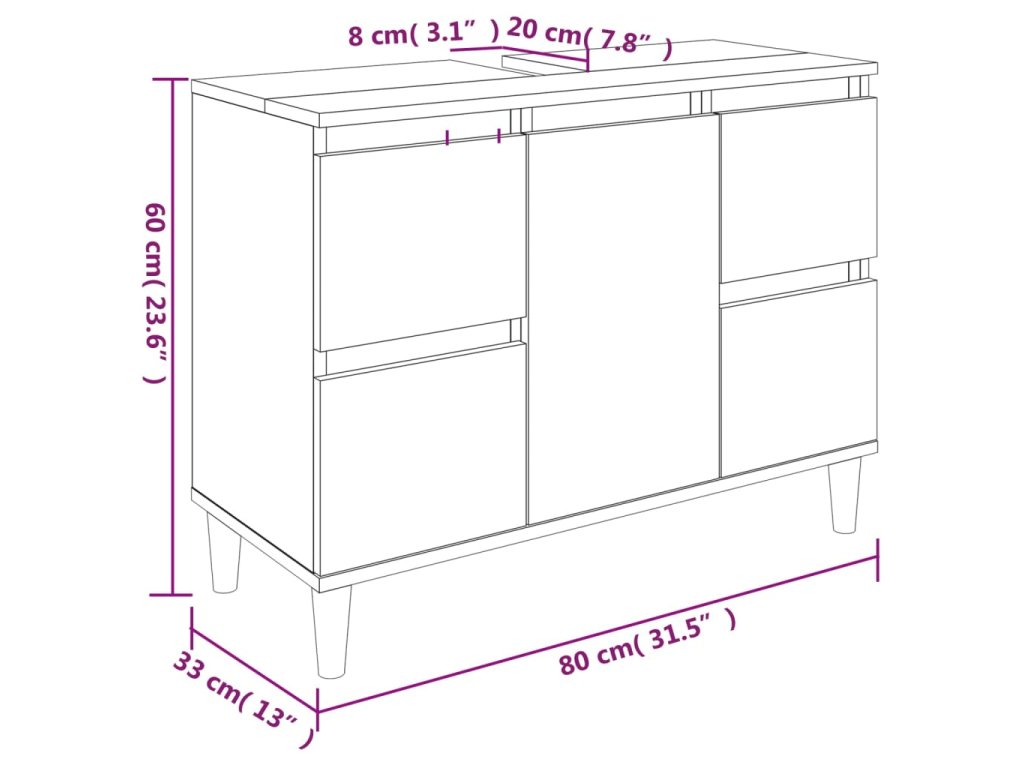 - Rozměry umyvadlové skříňky: 80 x 33 x 60 cm (Š x H x V)