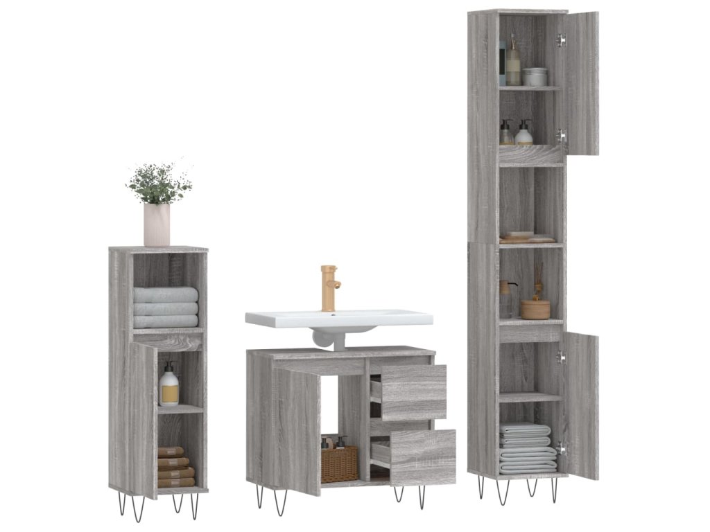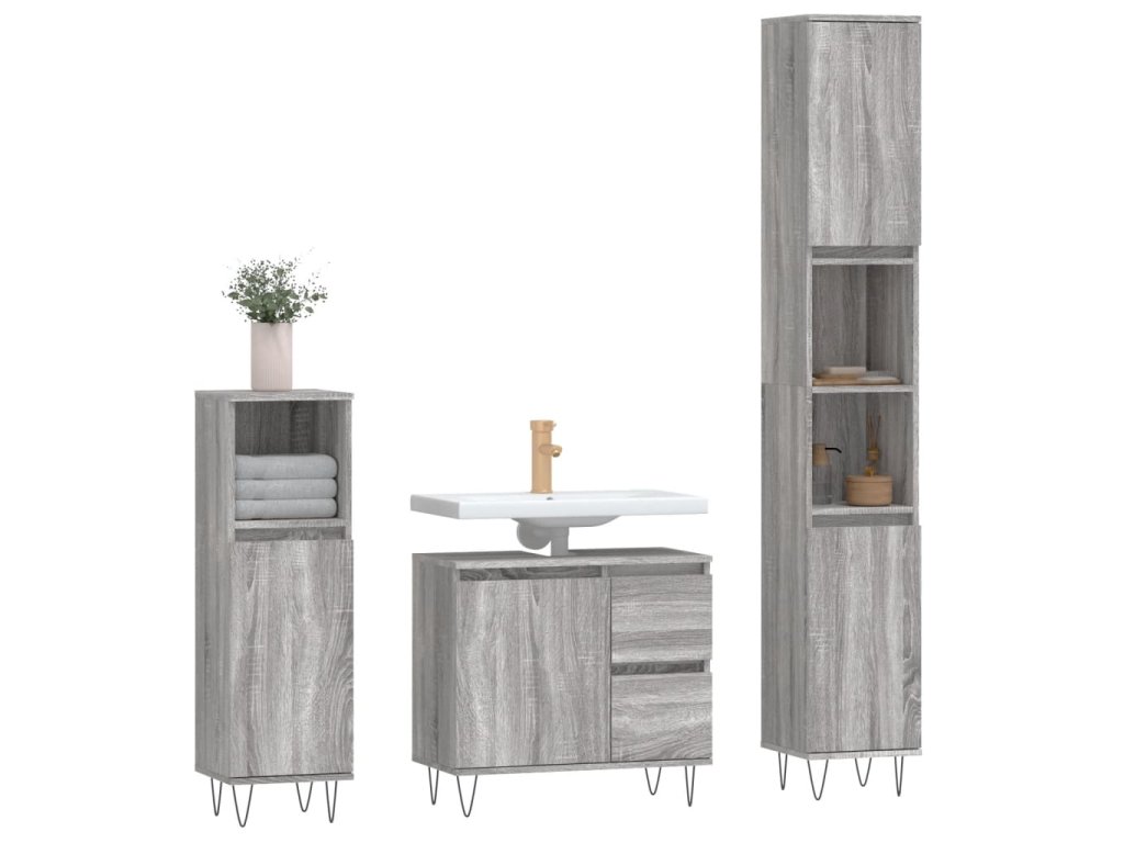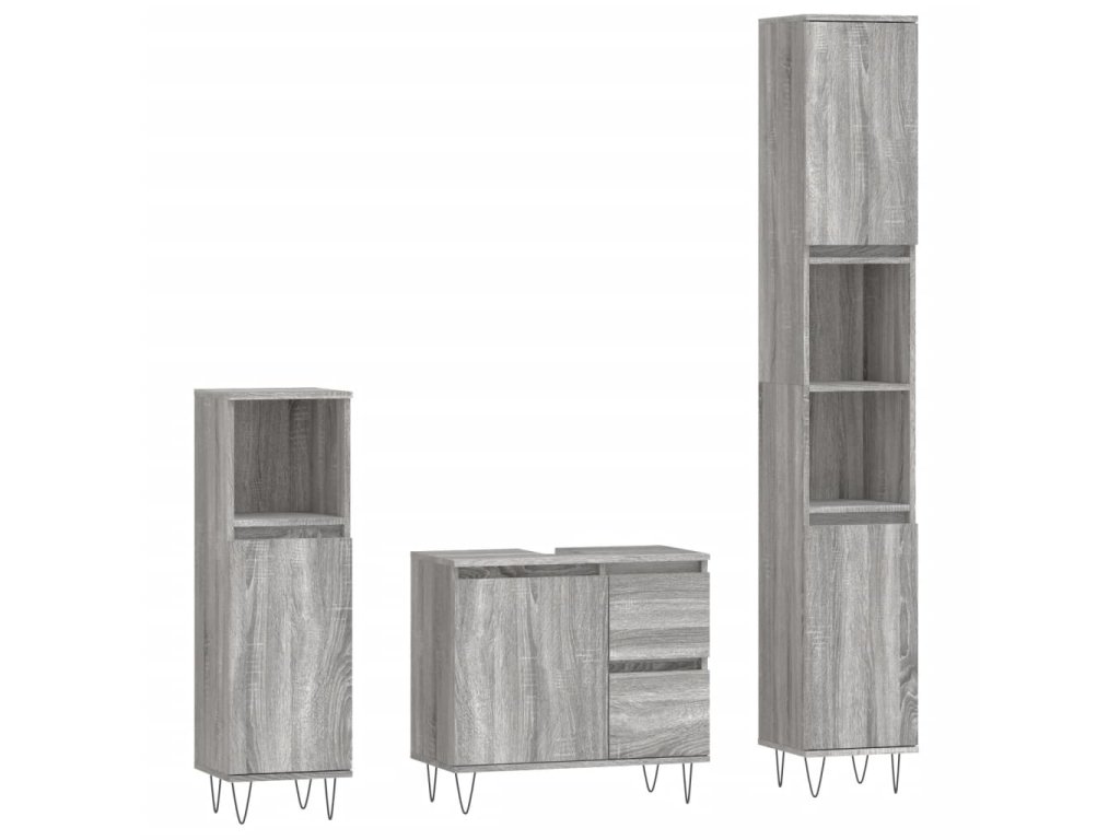 3dílný set koupelnového nábytku šedý sonoma kompozitní dřevo 3190227