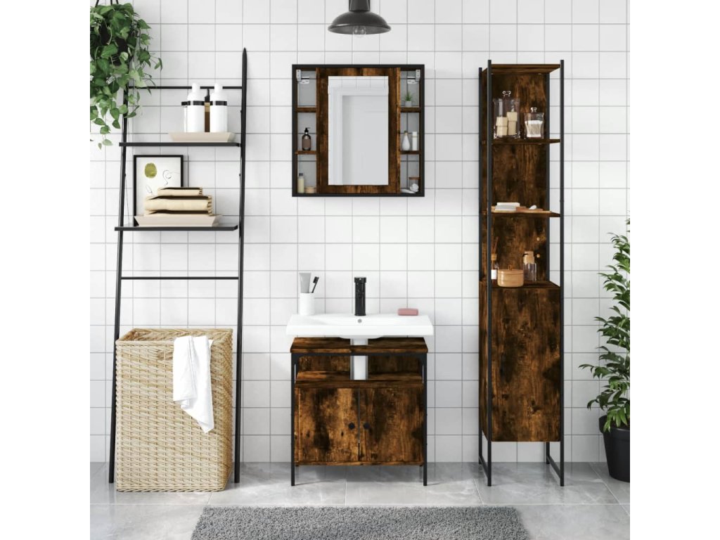 3dílný set koupelnových skříněk kouřový dub kompozitní dřevo 3214737