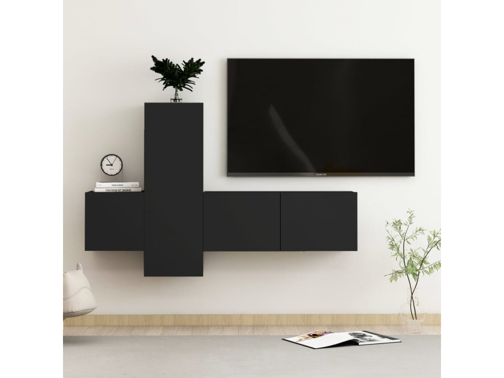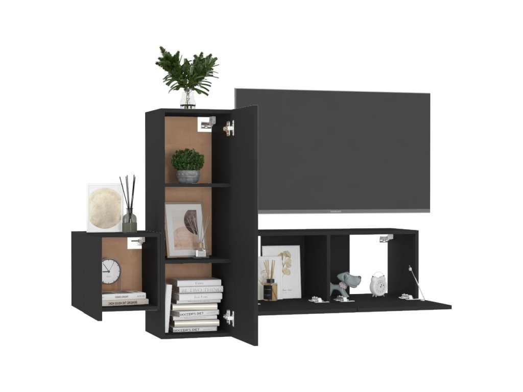 3dílný set TV skříněk černý kompozitní dřevo 3078759