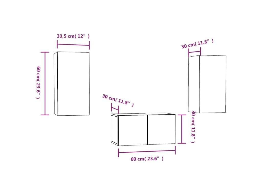 - 2x TV skříňka: 30,5 x 30 x 60 cm (Š x H x V)