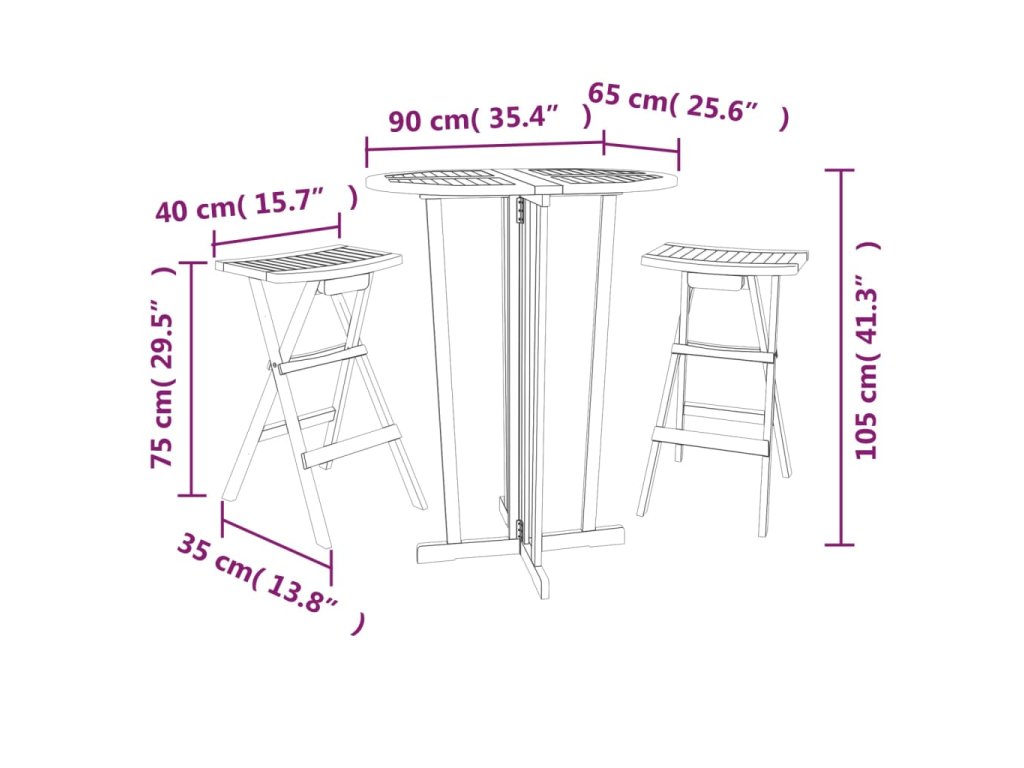 3dílný skládací barový set masivní teakové dřevo 3100777