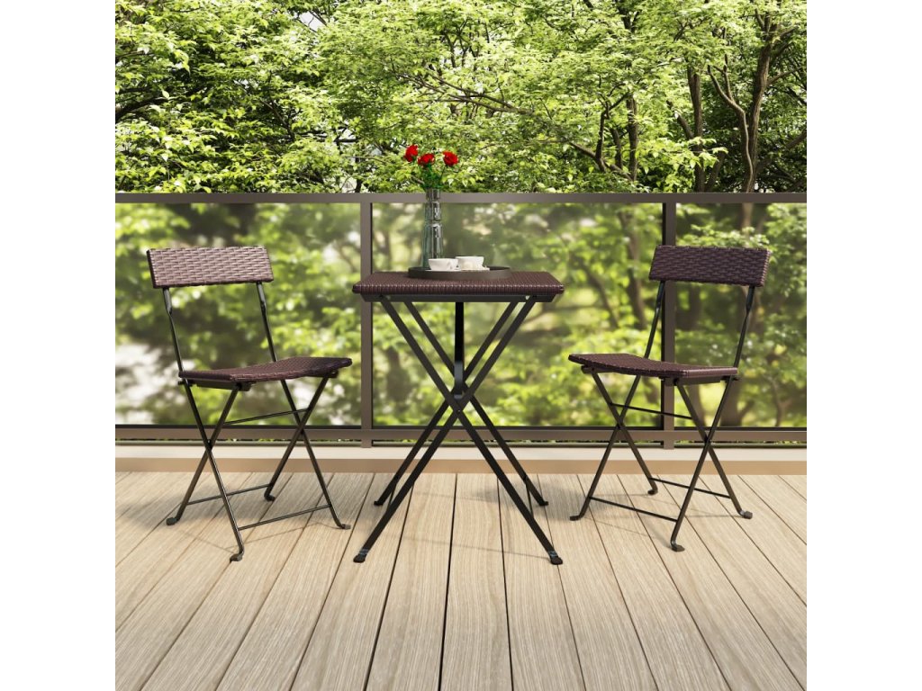 Tento 3dílný skládací bistro set z polyratanu je vynikající volbou pro stolování nebo odpočinek na zahradě, balkoně nebo terase.