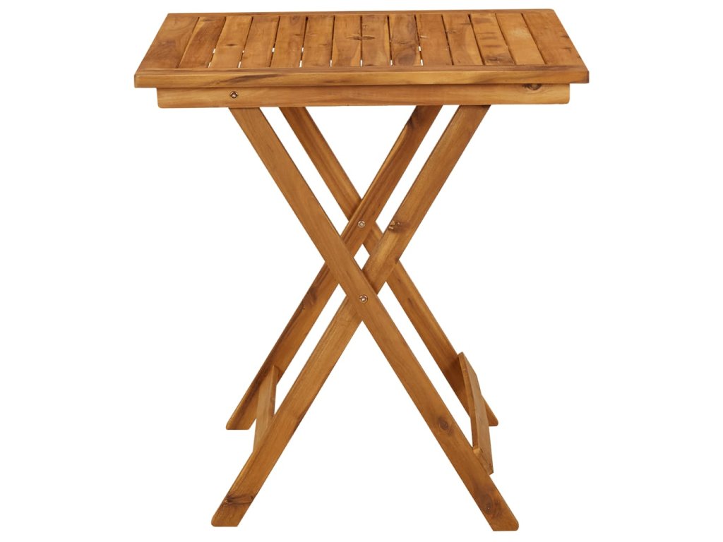 Tento jídelní set je vyrobený z masivního akáciového dřeva, je robustní a stabilní. Olejem napuštěný povrch nábytku snadno vyčistíte navlhčeným hadříkem. Jak jídelní stůl, tak i židle je možné složit, aby zbytečně nepřekážely, když je zrovna nepoužíváte.