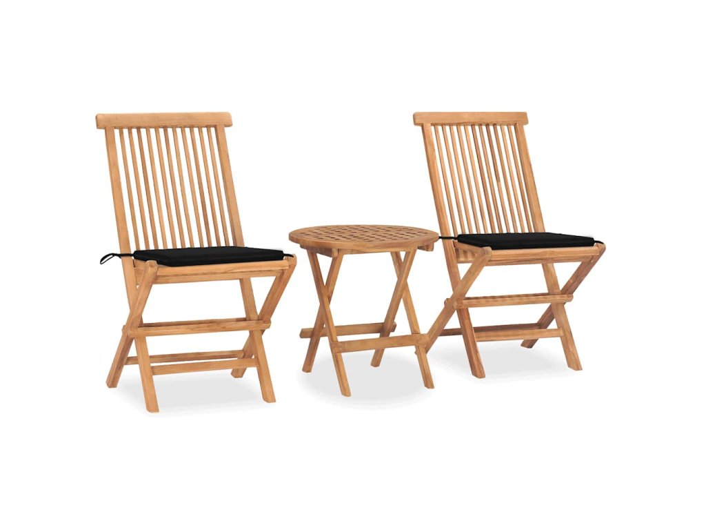 3dílný skládací zahradní jídelní set s poduškou masivní teak 3063178