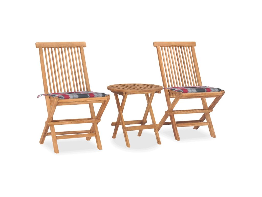 3dílný skládací zahradní jídelní set s poduškou masivní teak 3063184