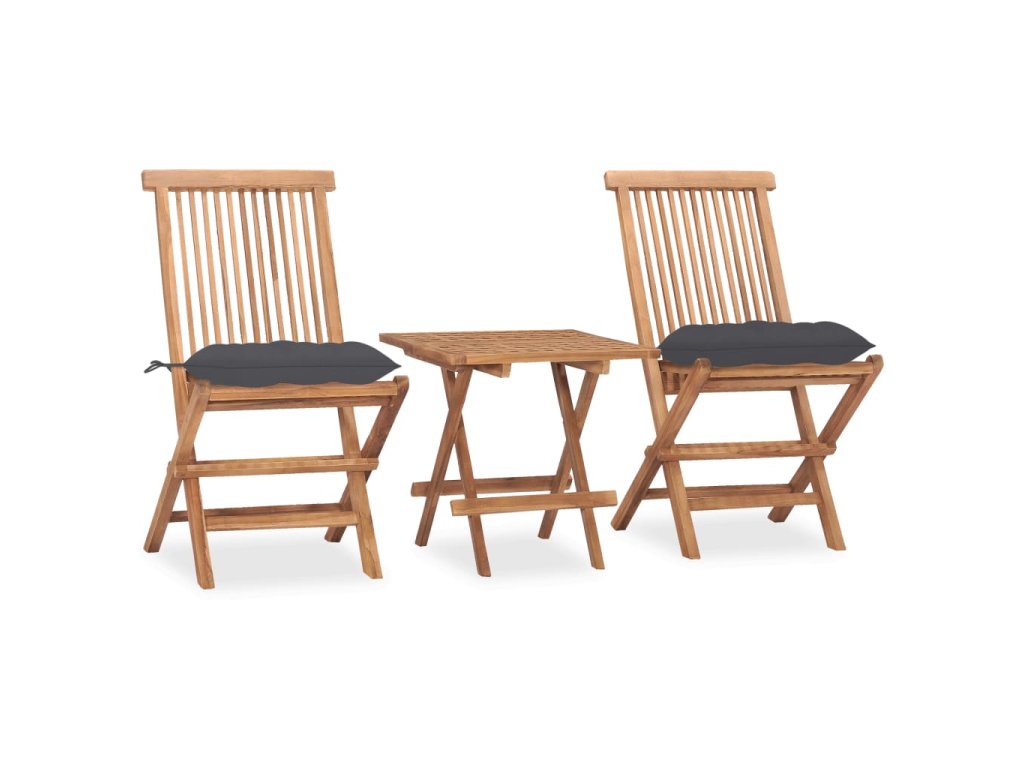 3dílný skládací zahradní jídelní set s poduškou masivní teak 3063213