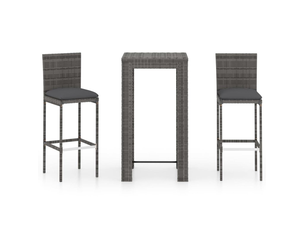 3dílný venkovní barový set s poduškami polyratan šedý 3064793
