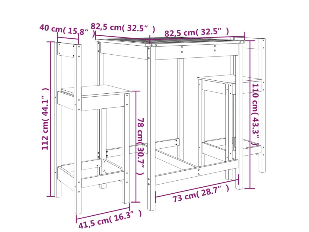 - Rozměry barového stolu: 82,5 x 82,5 x 110 cm (Š x H x V)