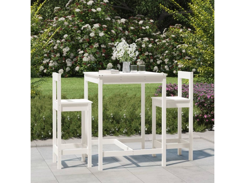 3dílný zahradní barový set bílý masivní borové dřevo 3154736