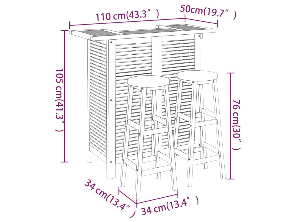3dílný zahradní barový set masivní akáciové dřevo 3116000