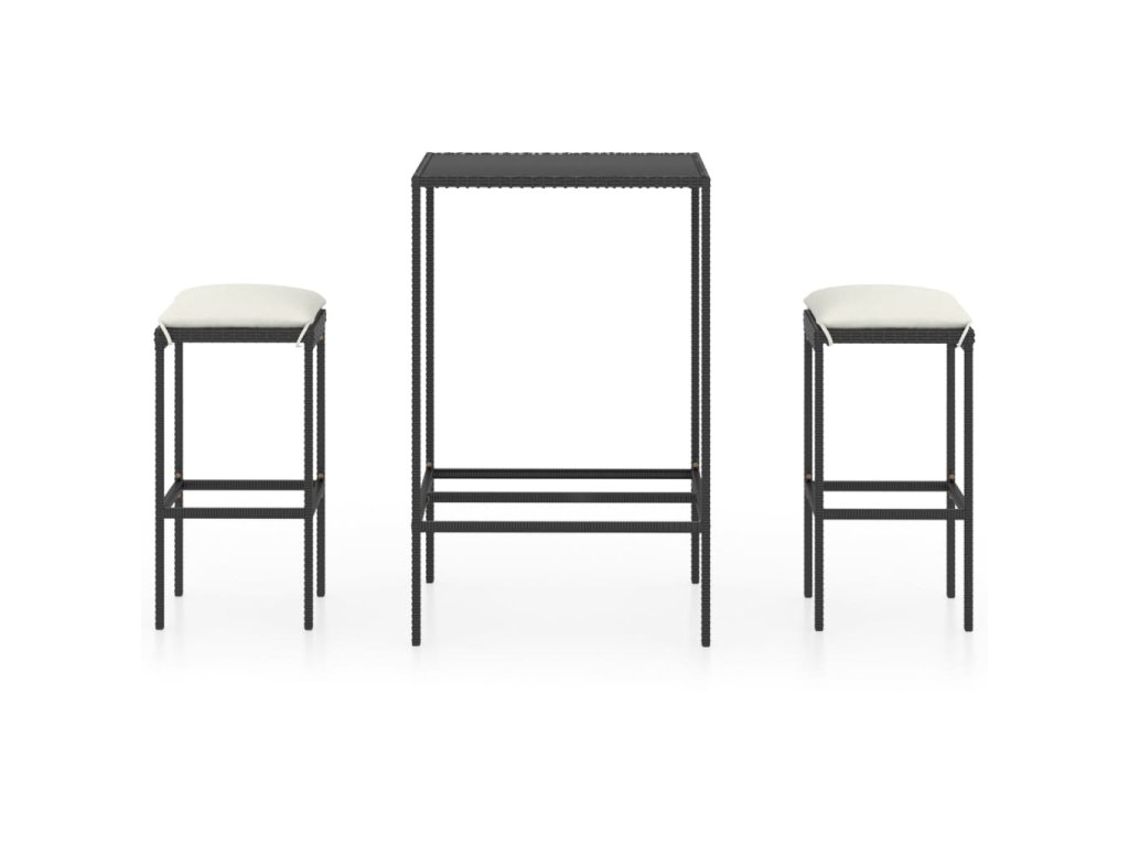3dílný zahradní barový set s poduškami polyratan černý 3064817