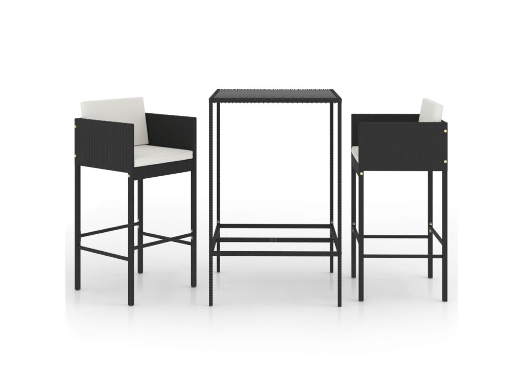 3dílný zahradní barový set s poduškami polyratan černý 3094787
