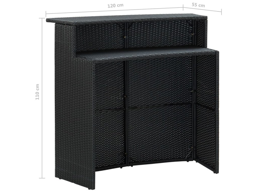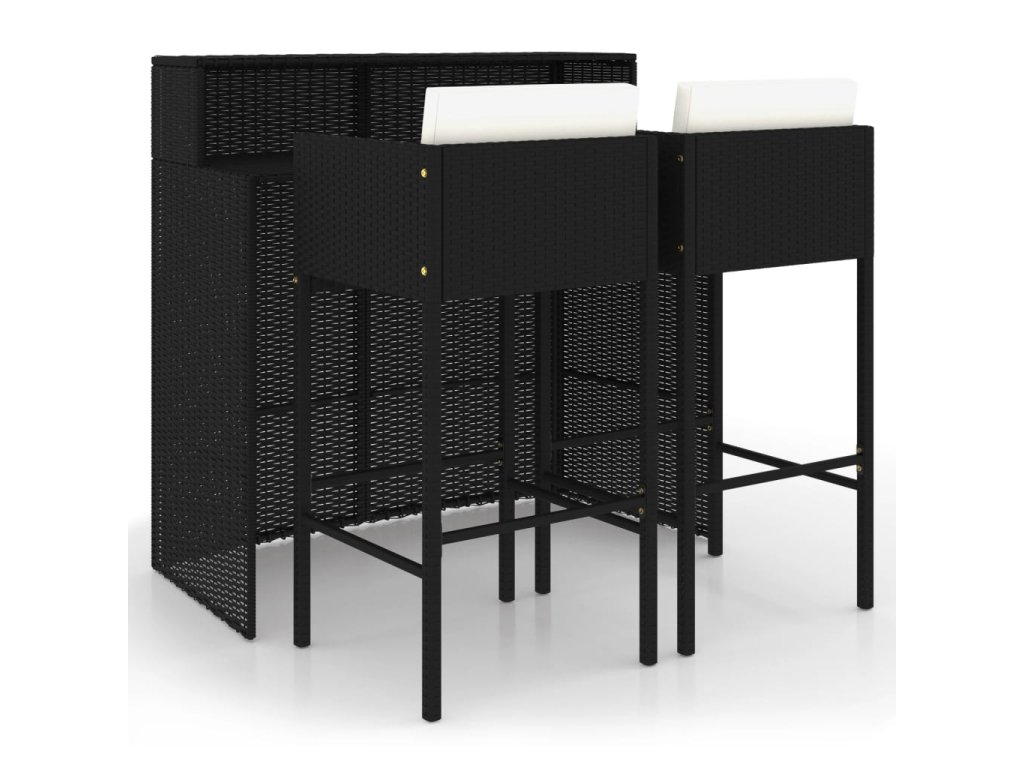 3dílný zahradní barový set s poduškami polyratan černý 3094807