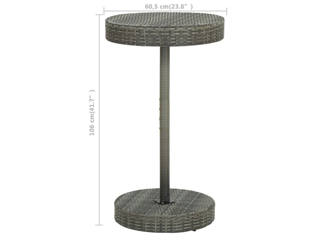 Barový stůl podepírá rám z práškově lakované oceli, který mu dodává na stabilitě a odolnosti. Kulatá stolní deska vám skvěle poslouží k odkládání nápojů a občerstvení nebo k vystavení dekorativních předmětů. Stoličky mají pevnou konstrukci z oceli, která je opletená voděodolným PE ratanem, jsou tedy stabilní a snadno se přesouvají. Poduška a opěrka na nohy vám navíc při sezení zajistí větší pohodlí. Polyesterový potah podušky se skrytým zipem umožňuje snadné praní.