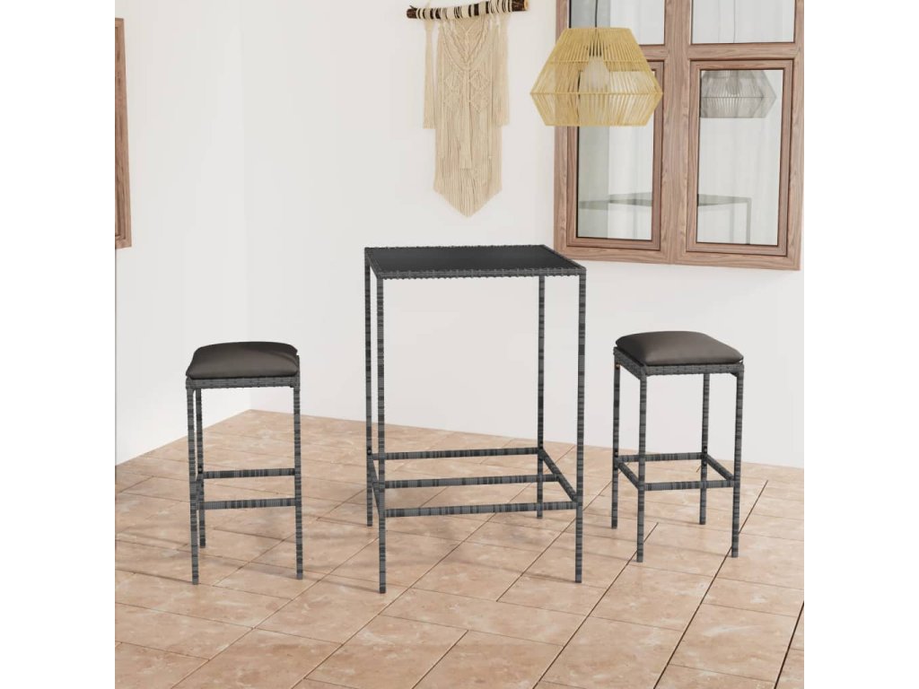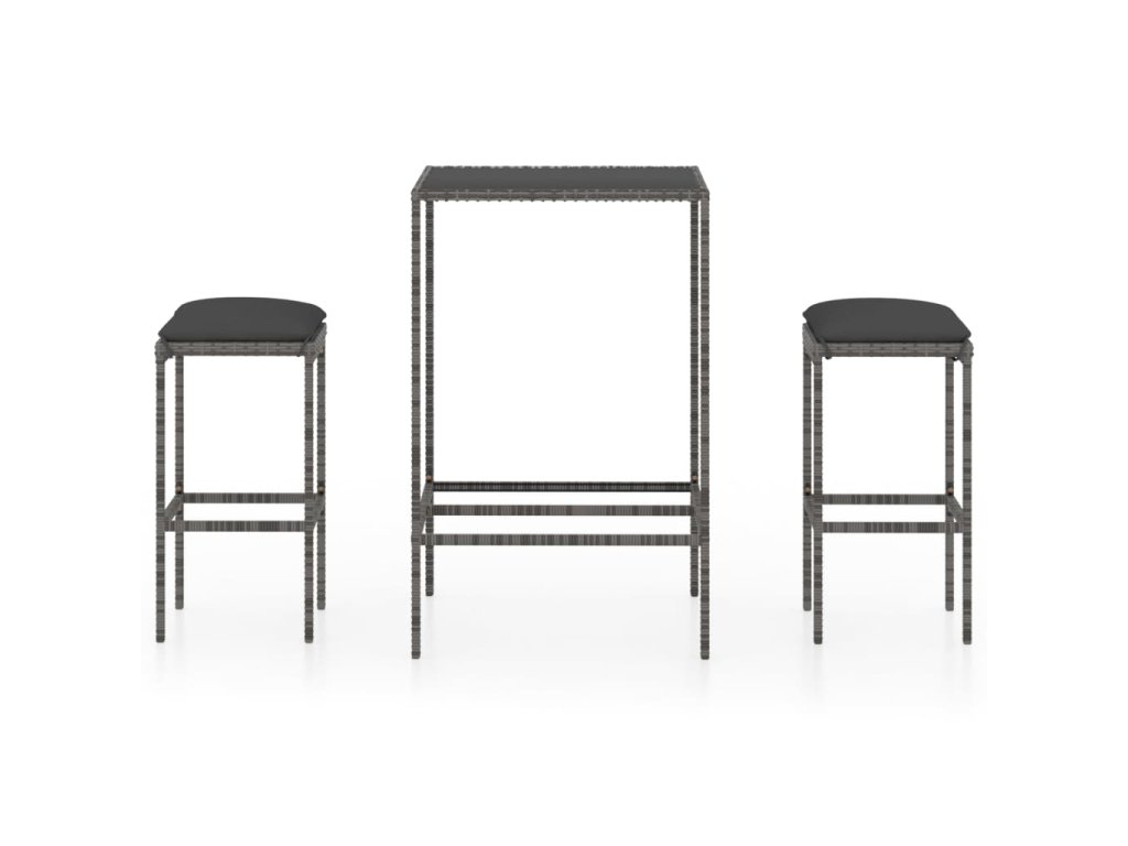 3dílný zahradní barový set s poduškami polyratan šedý 3064818