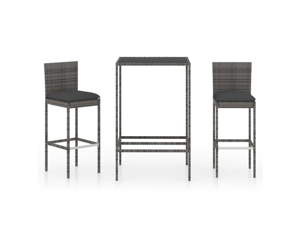 3dílný zahradní barový set s poduškami polyratan šedý 3064829