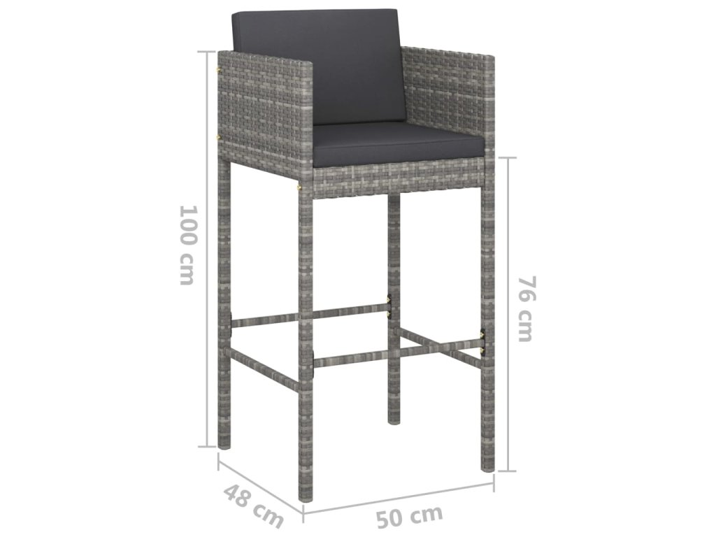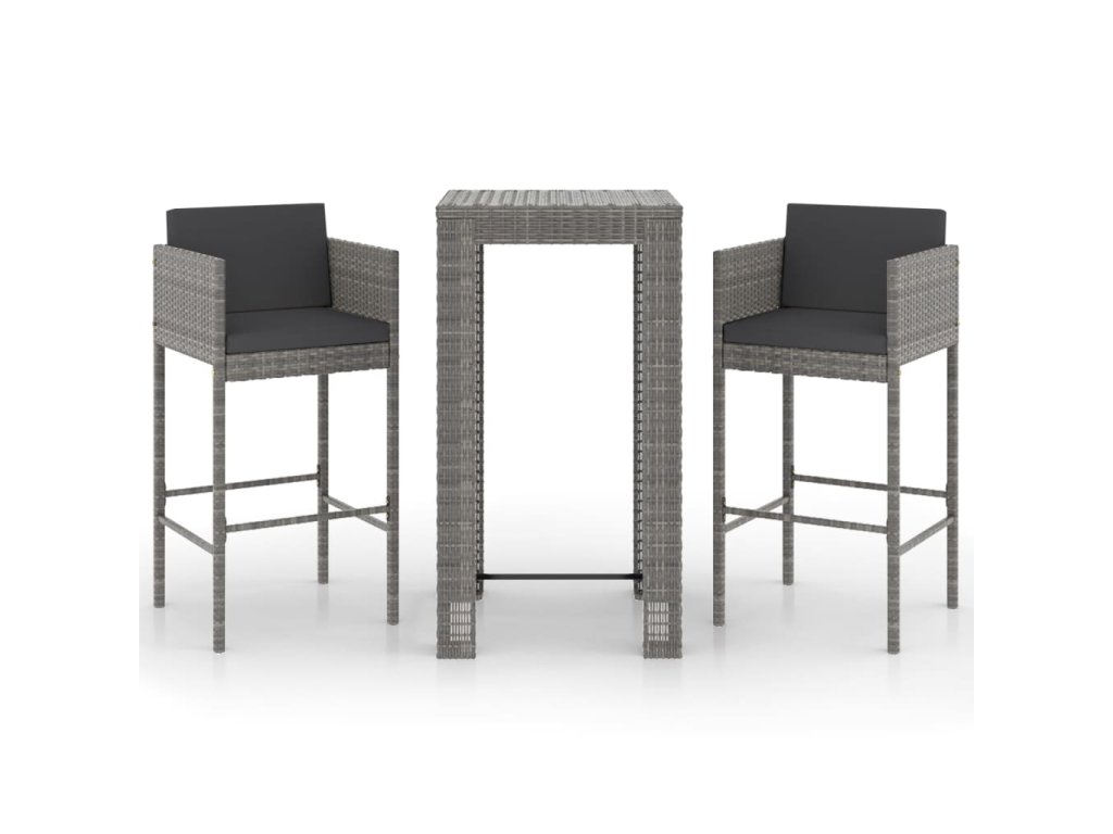 3dílný zahradní barový set s poduškami polyratan šedý 3094779