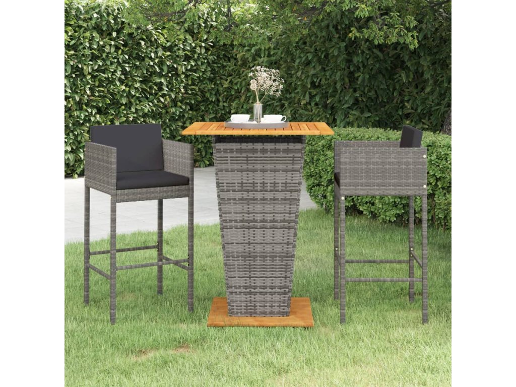 3dílný zahradní barový set s poduškami polyratan šedý 3094803