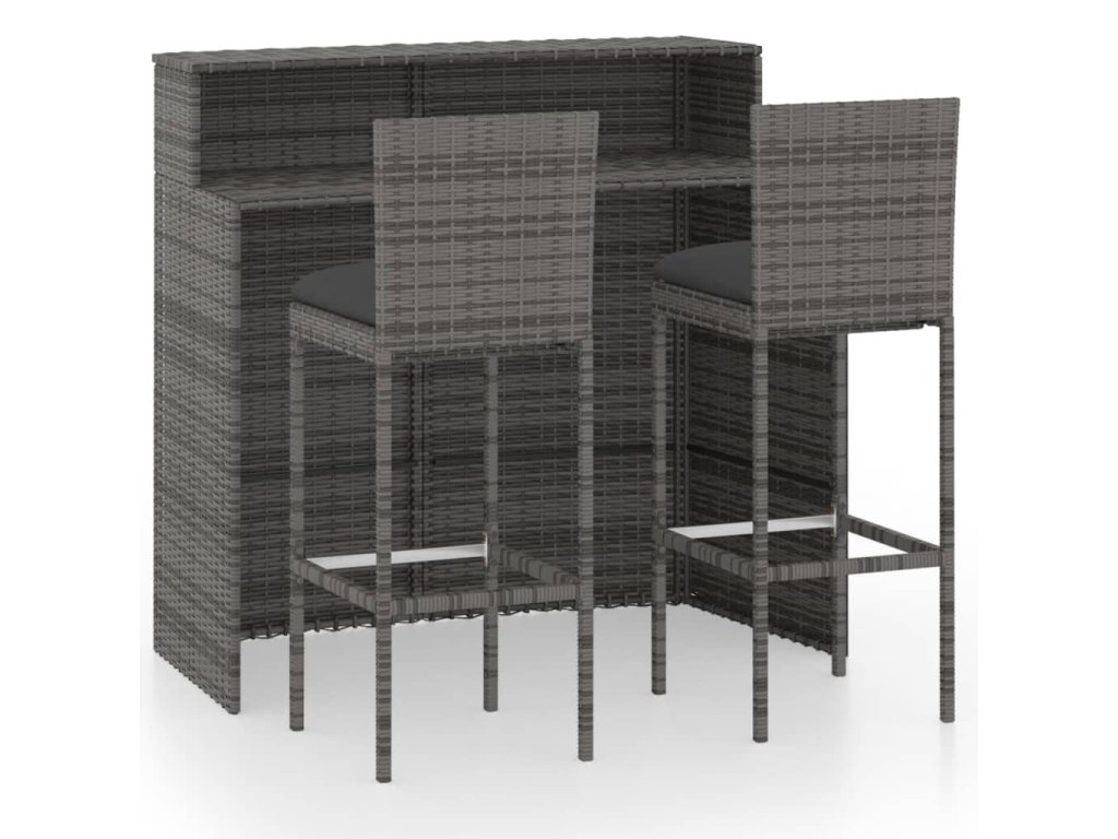 Barový set je vyrobený z PE ratanu, který výborně vzdoruje vodě i dalším klimatickým vlivům, a tak se snadno čistí, hodně toho vydrží a můžete ho klidně používat každý den. Rám z práškově lakované oceli přidává stolu i stoličkám na odolnosti a prodlužuje jejich životnost. Nábytek má ovšem zároveň lehkou konstrukci, abyste mohli všechny díly bez námahy přesouvat. Tlusté odnímatelné podušky na sedáky vám zajistí mimořádné pohodlí. Jejich potahy mají navíc zapínání na zip, což výrazně usnadňuje jejich sejmutí a praní.