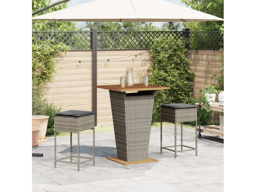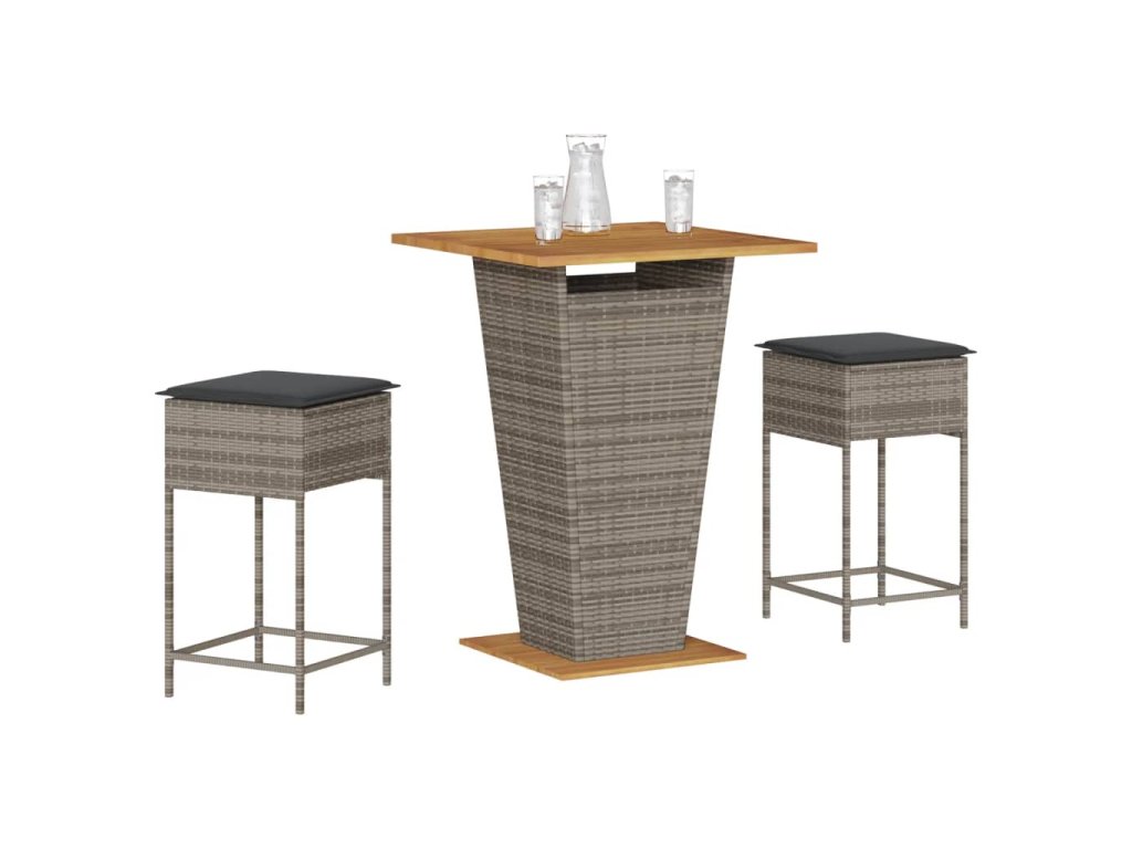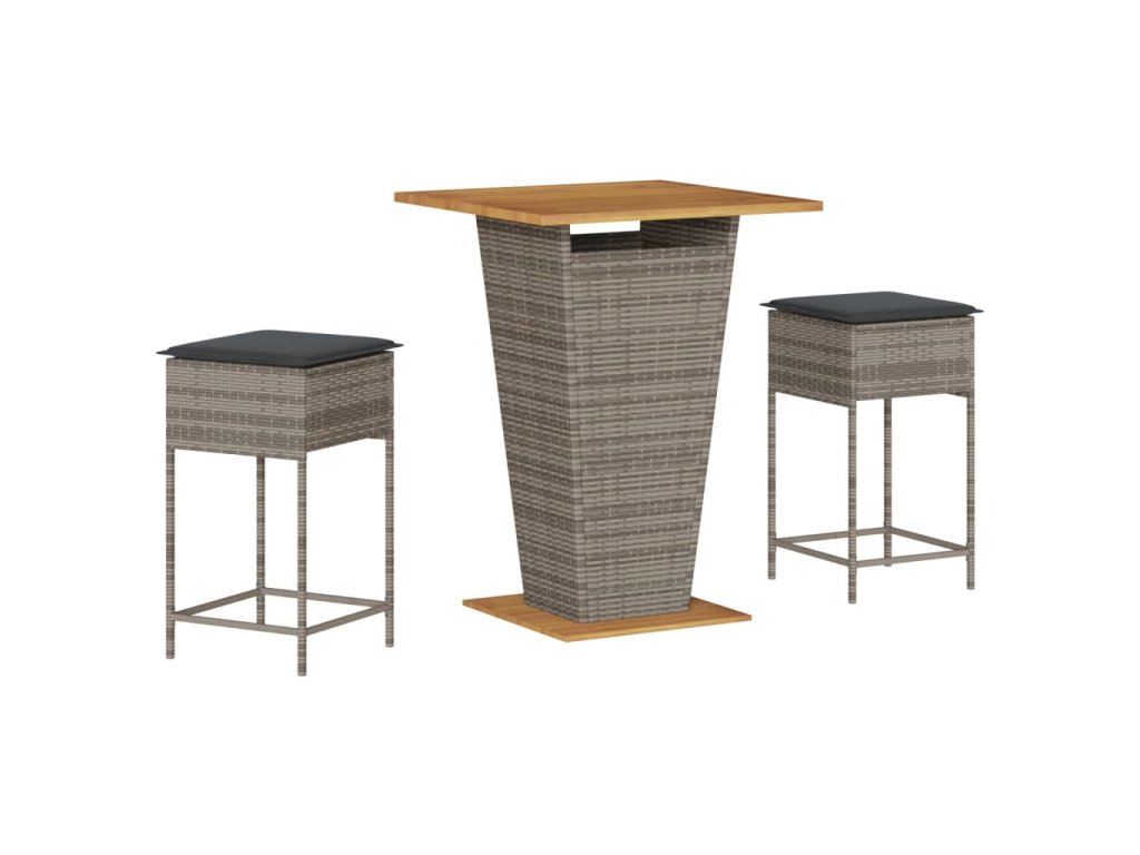 3dílný zahradní barový set s poduškami šedý polyratan 3261482