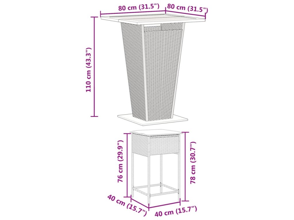 Tento módní zahradní barový set, který kombinuje styl a funkčnost, se jistě stane středem pozornosti vaší zahrady, terasy a jakéhokoli jiného obytného prostoru.