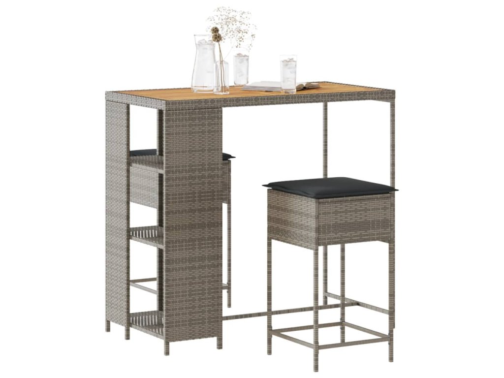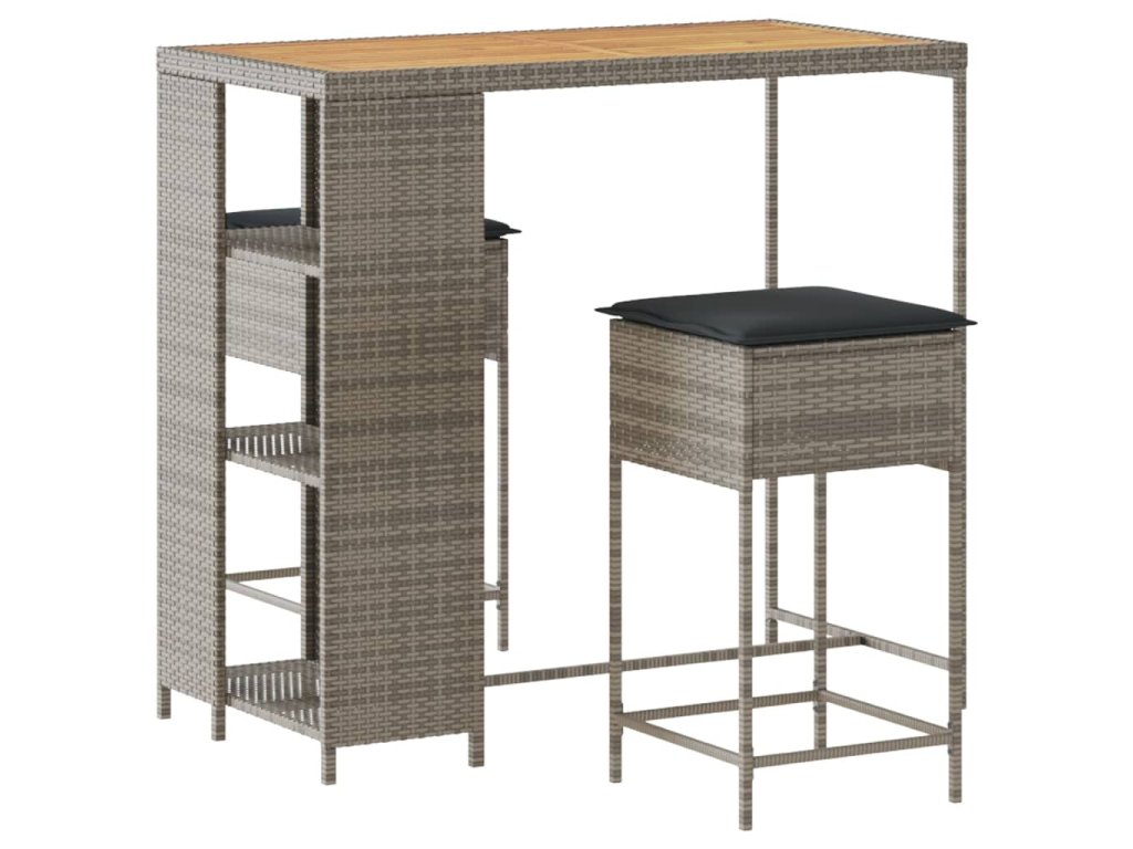 3dílný zahradní barový set s poduškami šedý polyratan 3261498