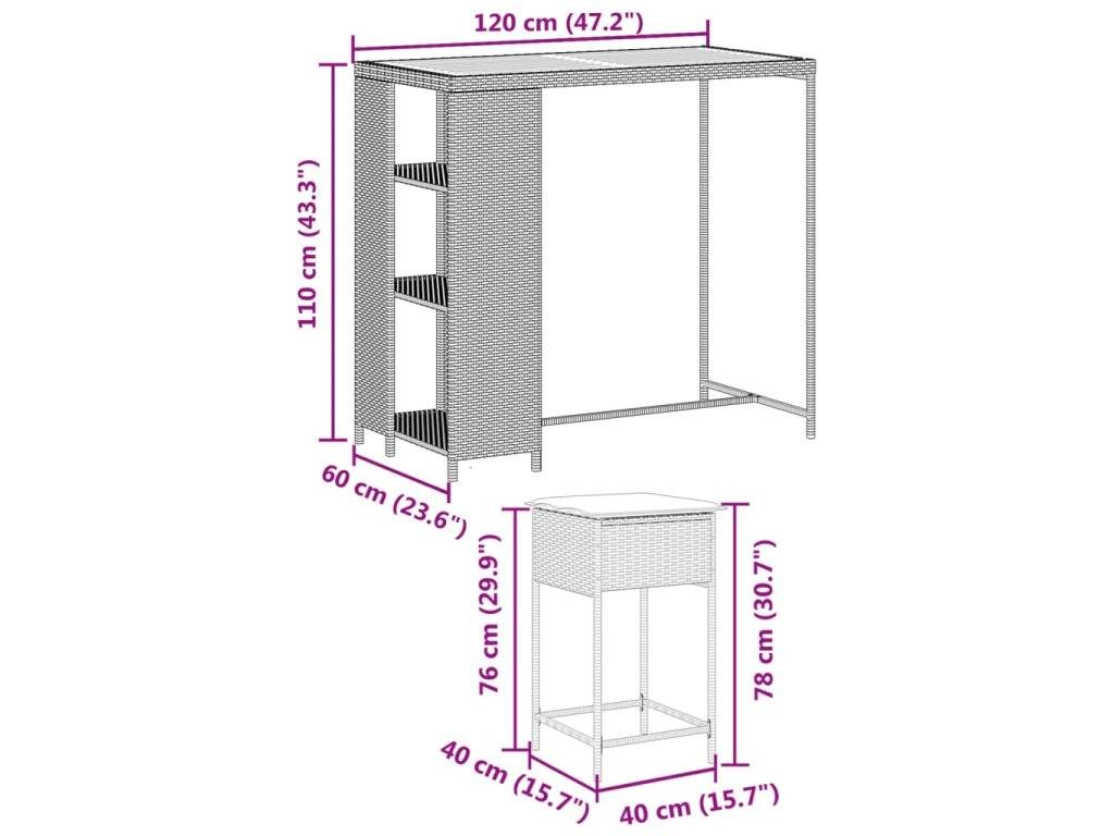 Tento módní zahradní barový set, který kombinuje styl a funkčnost, se jistě stane středem pozornosti vaší zahrady, terasy a jakéhokoli jiného obytného prostoru.