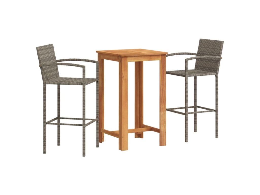 3dílný zahradní barový set šedý masivní akácie a polyratan 3295274