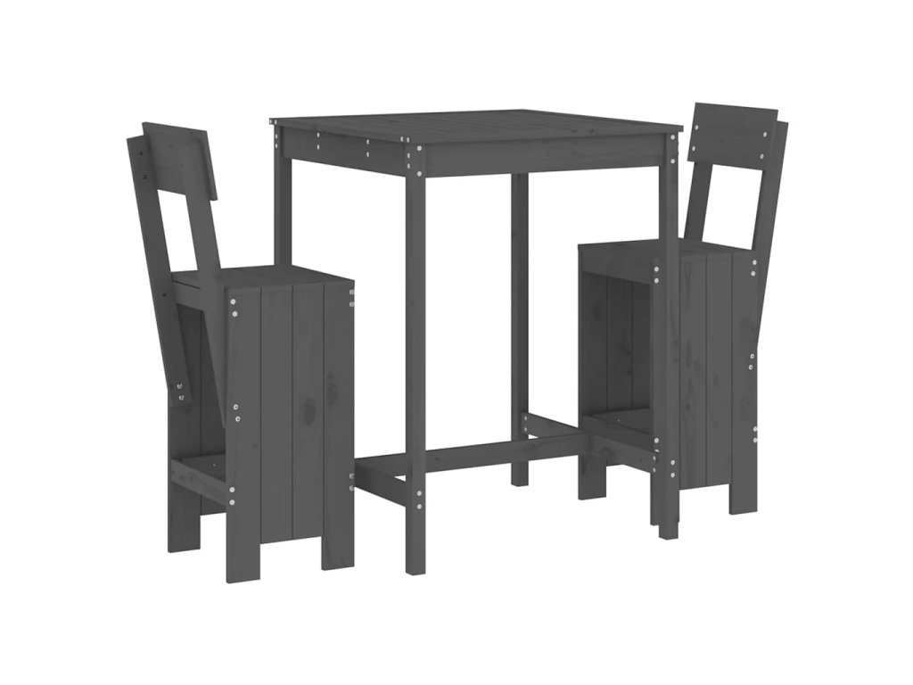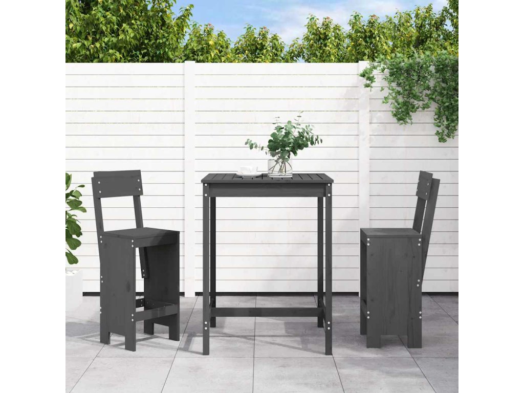 3dílný zahradní barový set šedý masivní borové dřevo 3157795