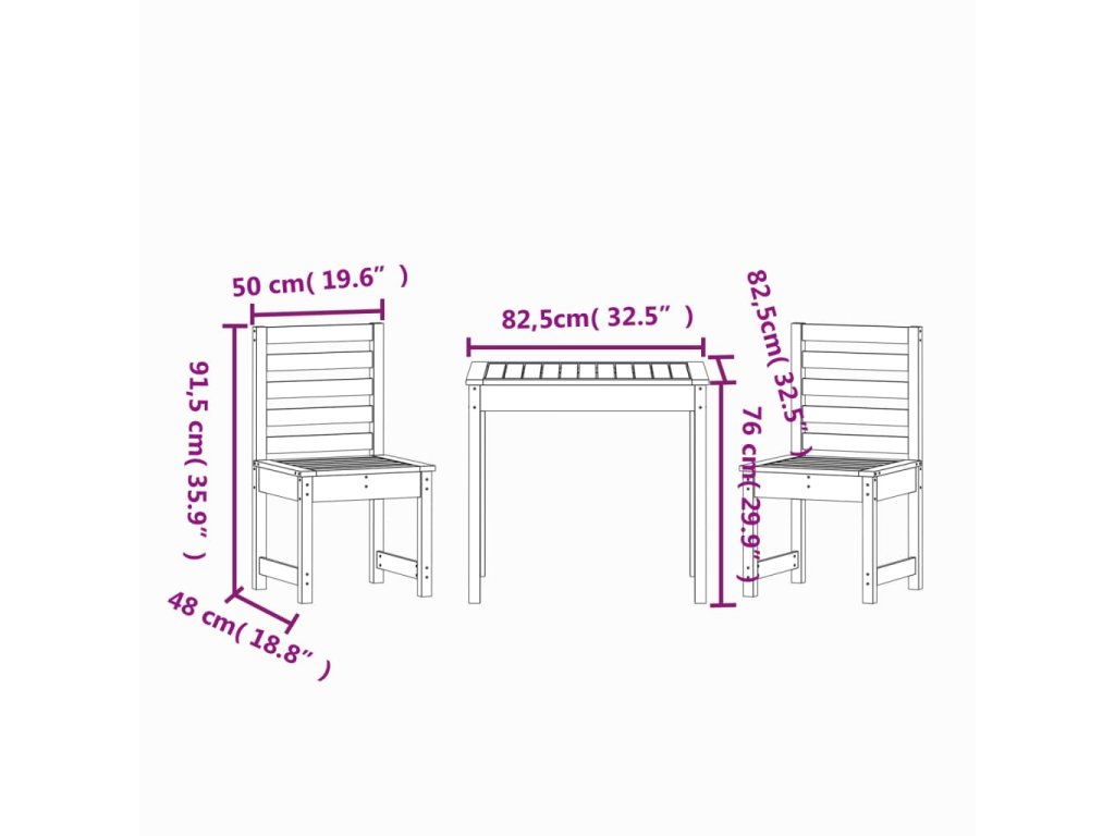 3dílný zahradní bistro set bílý masivní borové dřevo 3154672