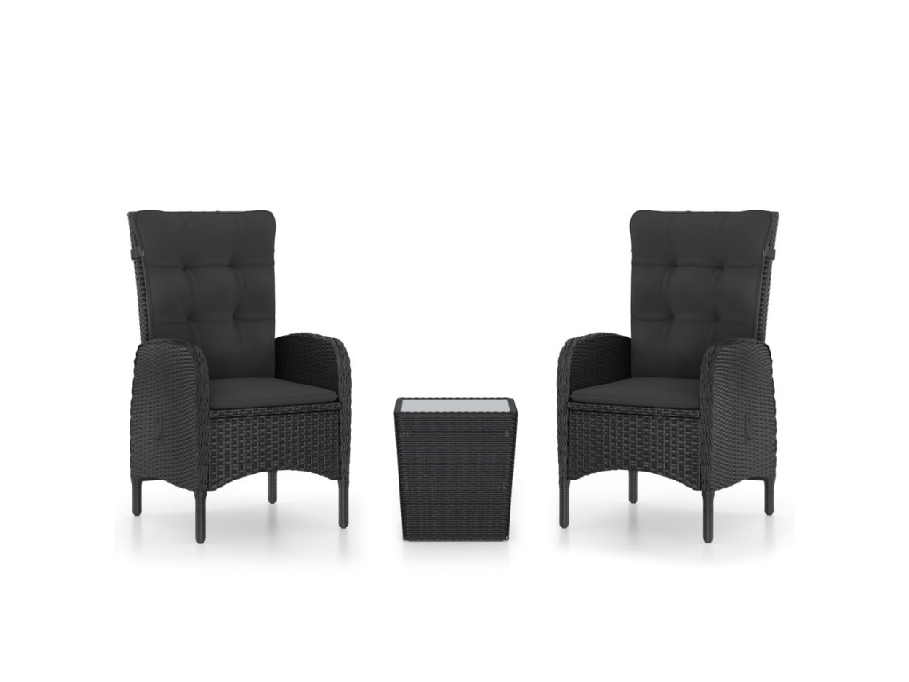 3dílný zahradní bistro set polyratan a sklo černý 3058536