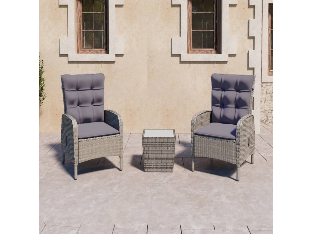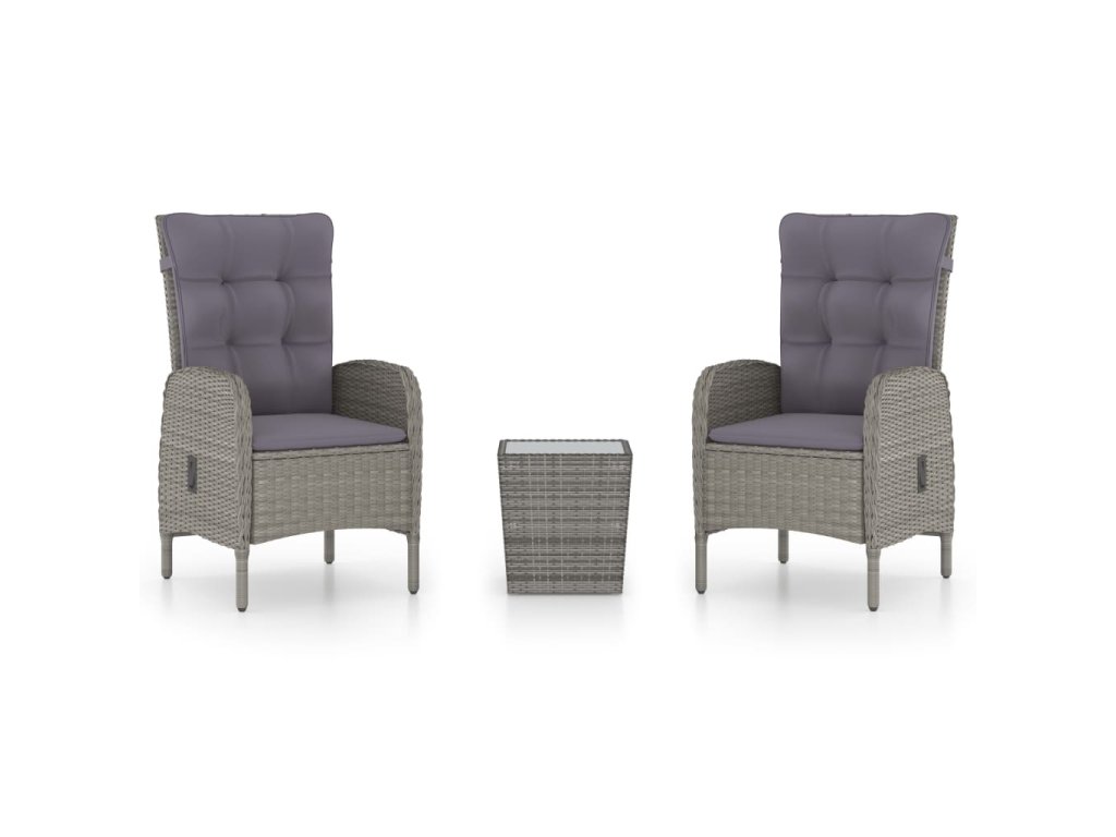 3dílný zahradní bistro set polyratan a sklo šedý 3058534
