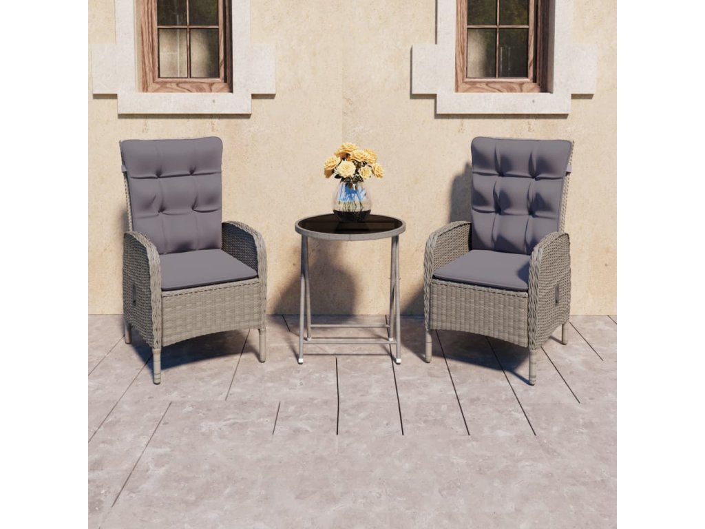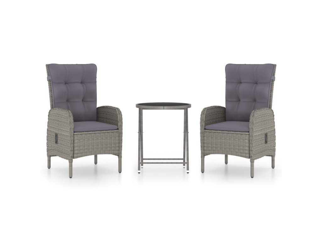 3dílný zahradní bistro set polyratan a sklo šedý 3058538