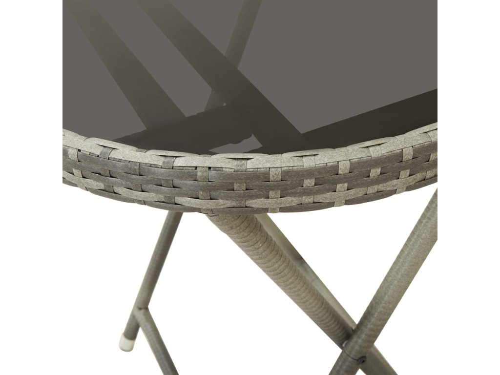 Rámy z práškově lakované oceli zajišťují stolu i židlím mimořádnou pevnost a odolnost. Lehká konstrukce umožňuje snadné přesouvání všech dílů sestavy. Set je vyrobený z klimaticky odolného PE ratanu a skla, lze ho proto bez námahy očistit navlhčeným hadříkem. Křesla mají zaoblená opěradla a područky pro maximální pohodlí. Ke kvalitnějšímu odpočinku přispívají i přiložené podušky, které mají potahy se zapínáním na zip pro jednodušší praní. Pokud nábytek právě nepoužíváte, můžete stůl složit a snadno uložit.