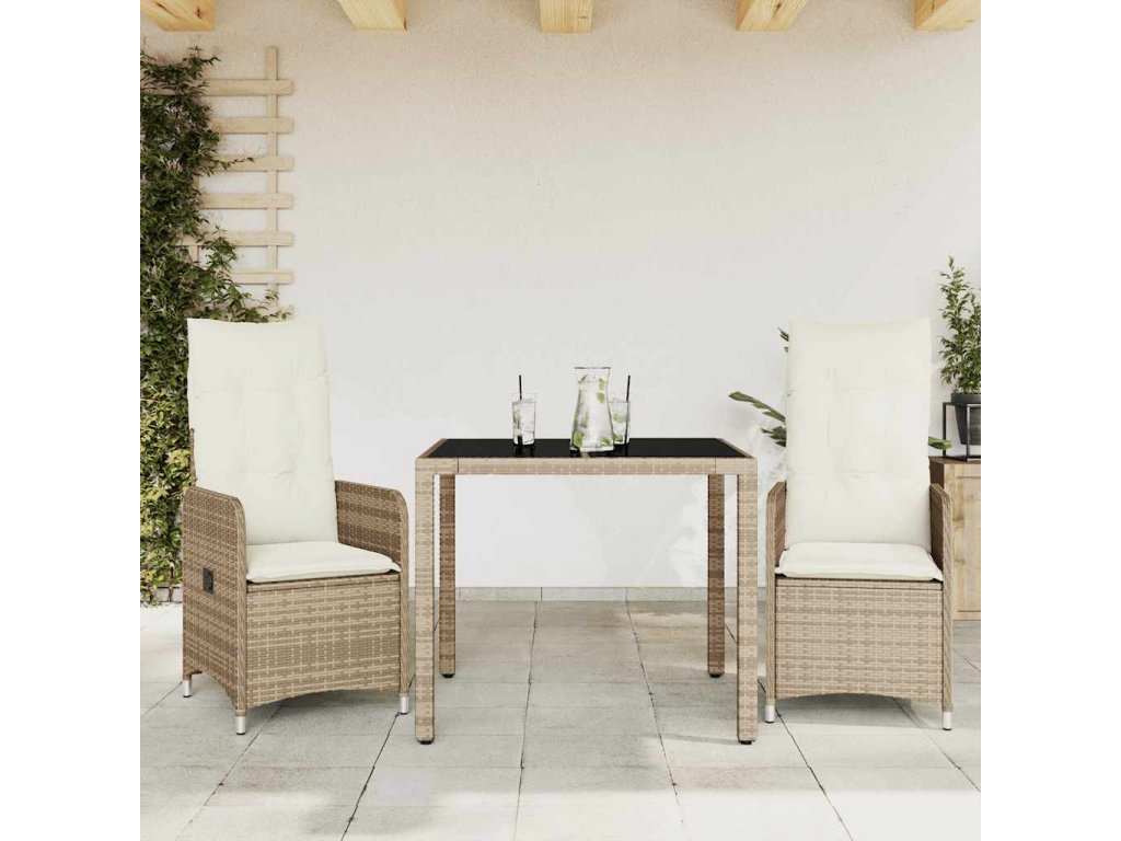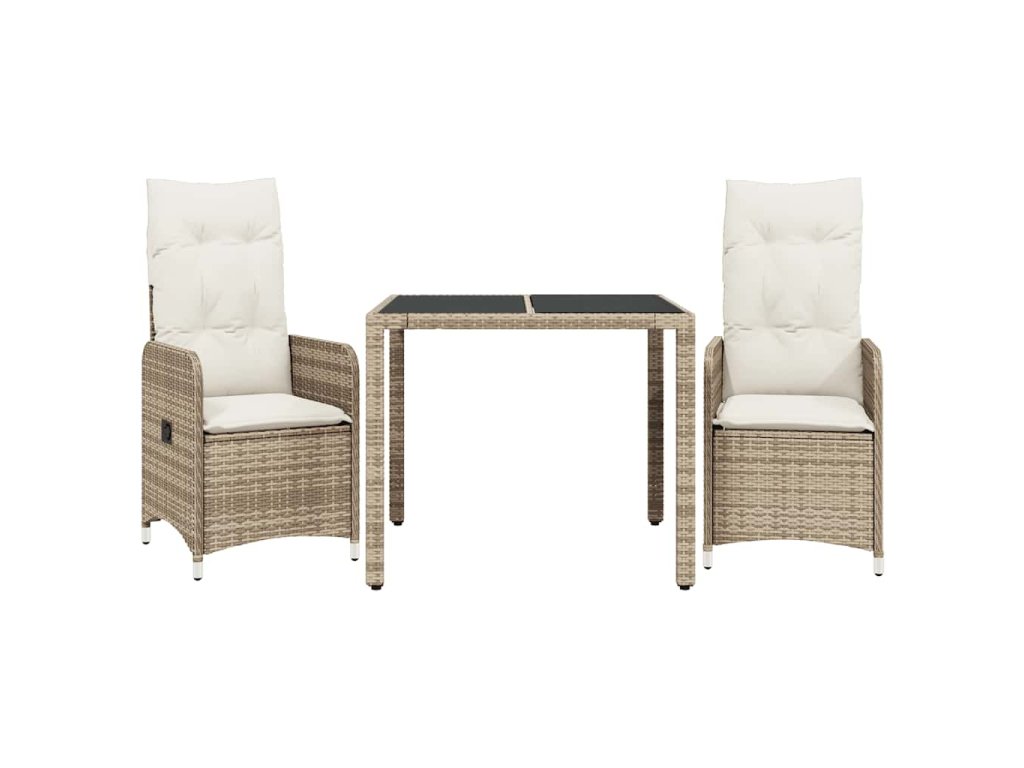 3dílný zahradní bistro set s poduškami béžový polyratan 3277095
