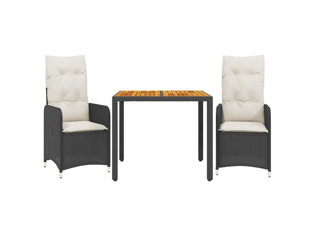 3dílný zahradní bistro set s poduškami černý polyratan 3276975