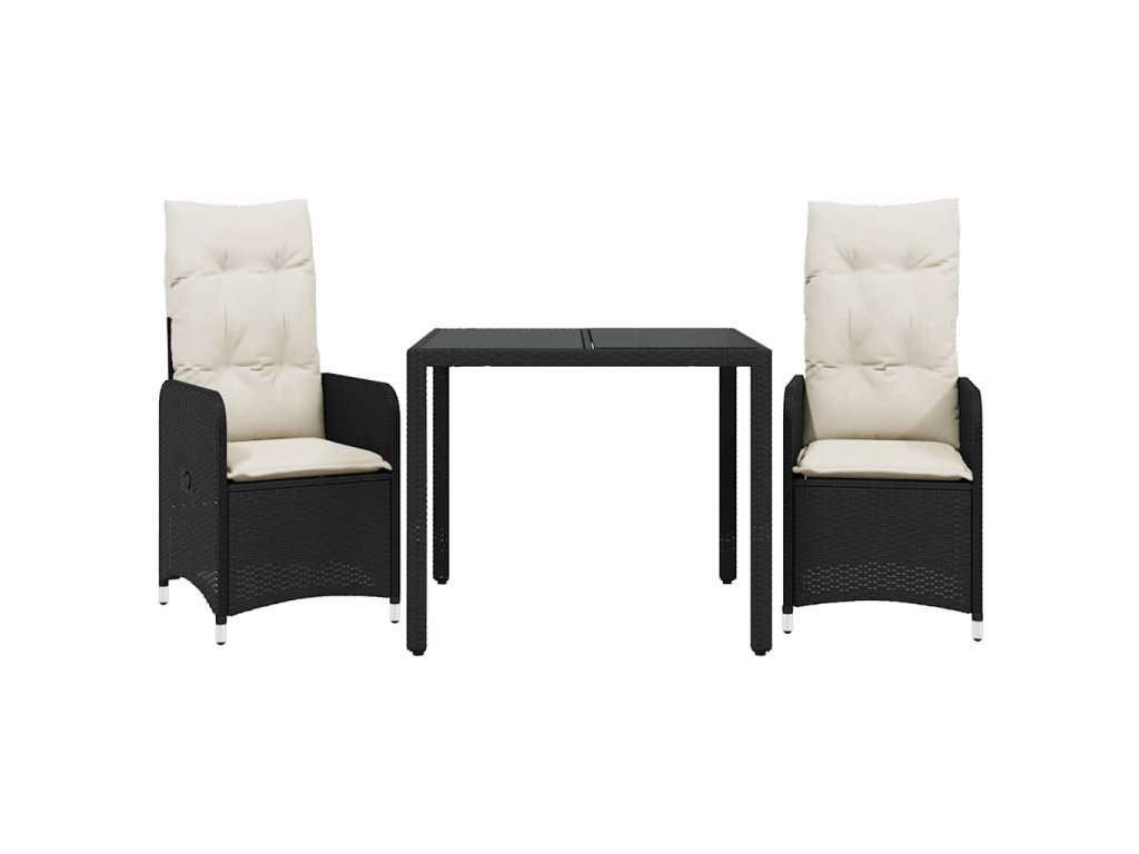 3dílný zahradní bistro set s poduškami černý polyratan 3276987