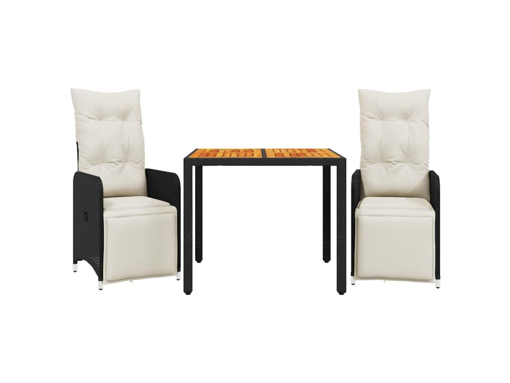 3dílný zahradní bistro set s poduškami černý polyratan 3277127