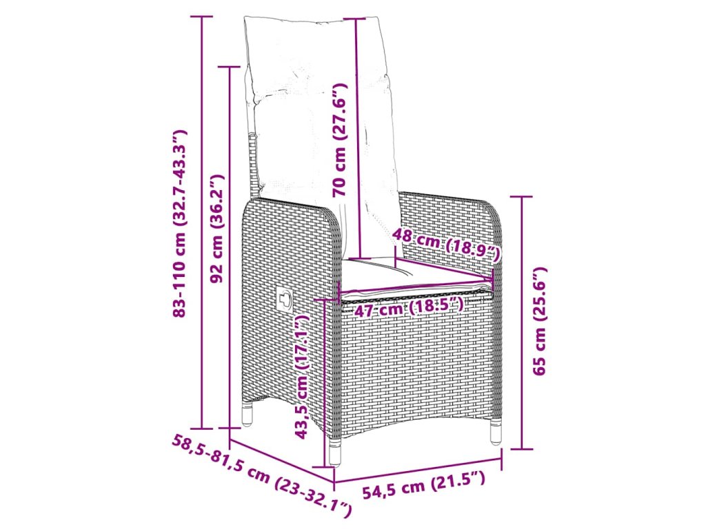 - Rozměry sklopeného křesla: 54,5 x 81,5 x 83 cm (Š x H x V)