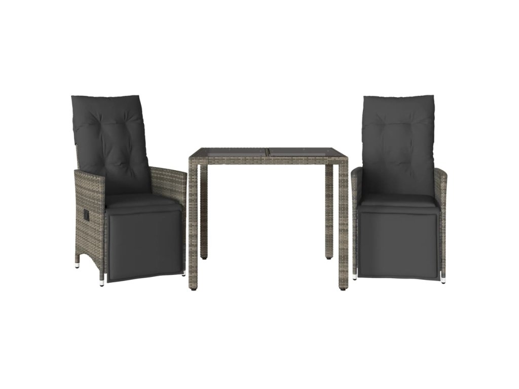 3dílný zahradní bistro set s poduškami šedý polyratan 3276893