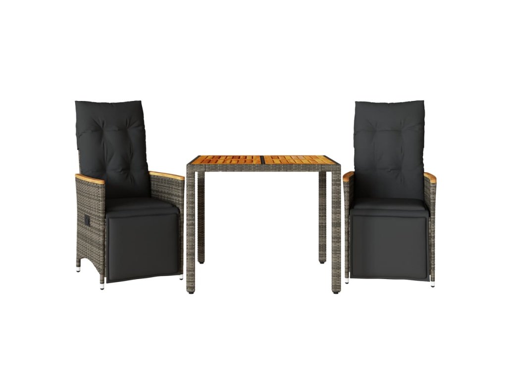 3dílný zahradní bistro set s poduškami šedý polyratan 3276967