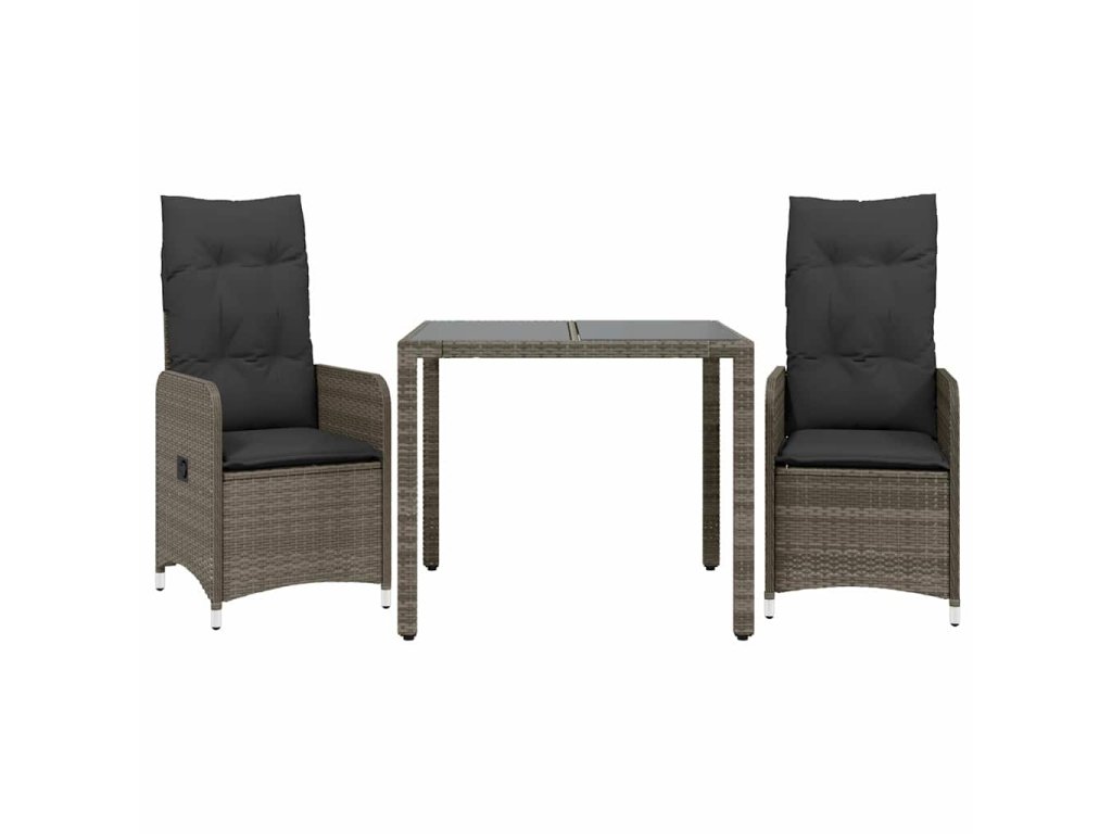 3dílný zahradní bistro set s poduškami šedý polyratan 3277031