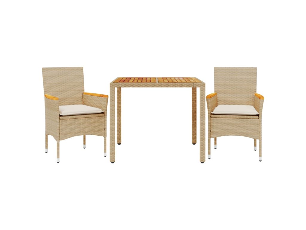 3dílný zahradní jídelní set a podušky béžový polyratan a akácie 3278639