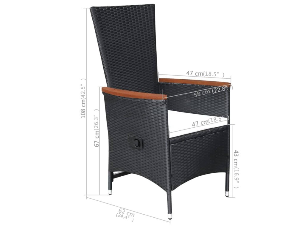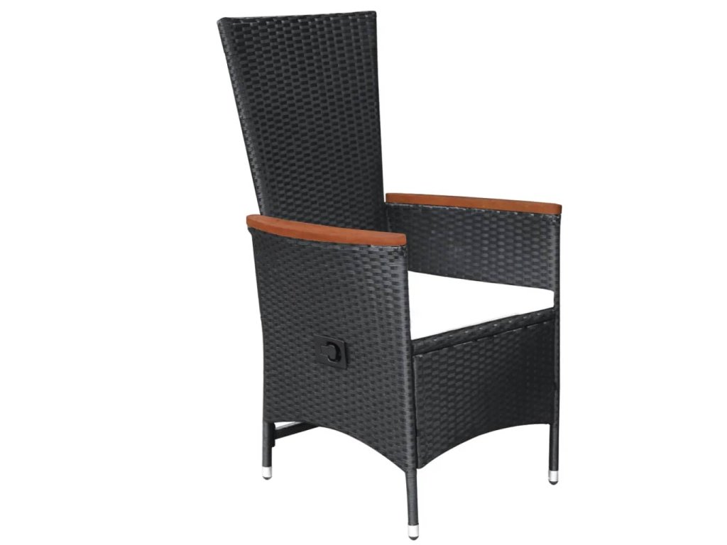 Jídelní stůl je zhotovený z masivního akáciového dřeva s olejovaným povrchem, takže je stabilní, odolný a nenáročný na údržbu. Jídelní židle mají rám z práškově lakované oceli, opletený PE ratanem, který výborně vzdoruje klimatickým vlivům. Jsou tudíž bytelné a snadno se čistí. Polohovatelné židle vám nabídnou veškeré pohodlí, jaké si jen můžete přát. Opěradlo lze sklopit zatažením za tlačítko na boku. Židle mají lehkou konstrukci, není tedy problém je přesunout, kam potřebujete. Navíc jsou opatřené mimořádně pohodlnými, hustě polstrovanými poduškami na sedák pro maximální komfort. Jejich polyesterové potahy nevyžadují téměř žádnou údržbu a dají se stáhnout a oprat.